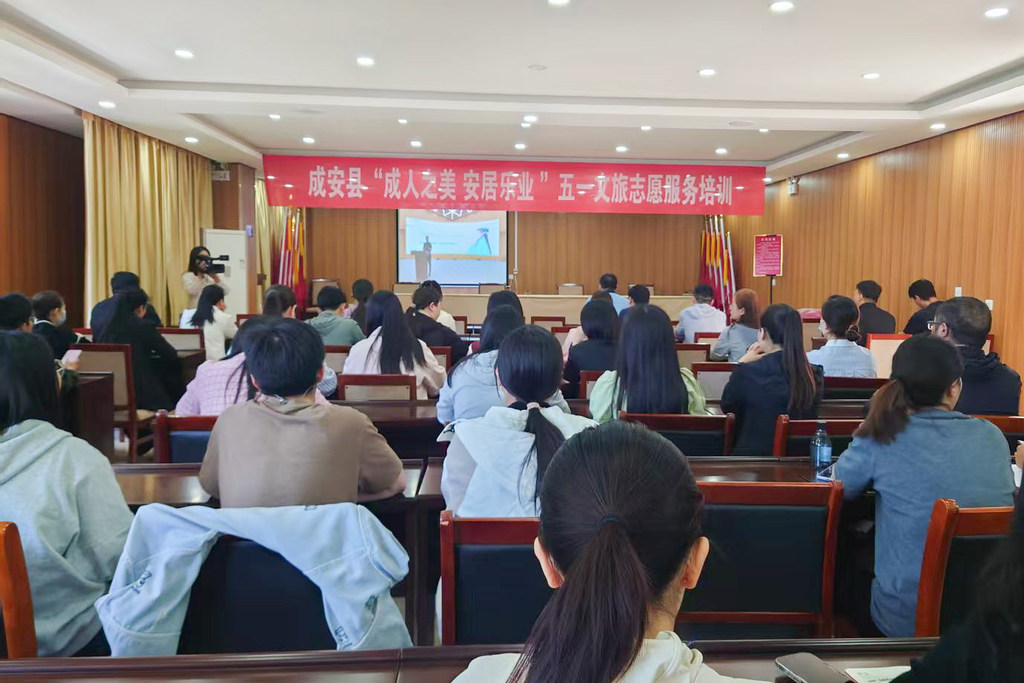 成安县组织志愿者线上参加培训。成安县委社会工作部供图