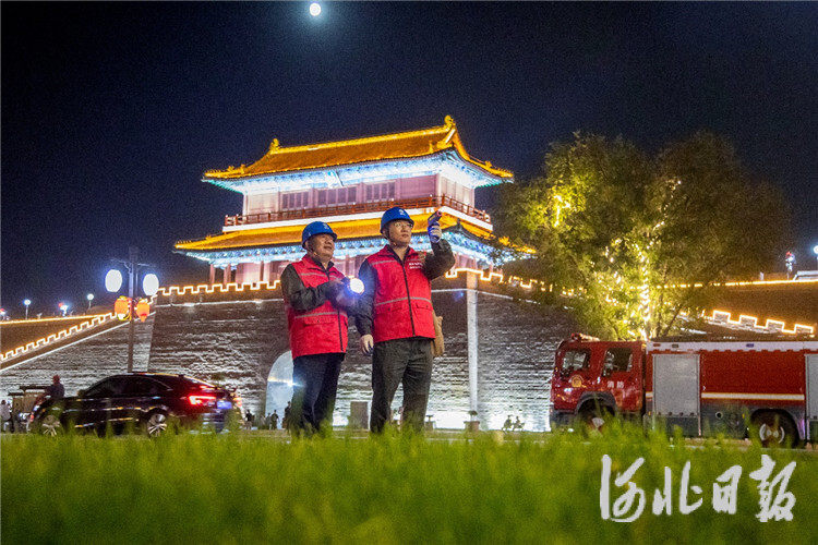 国网正定县供电公司工作人员在南城门核心景区开展巡视。孙香梅摄