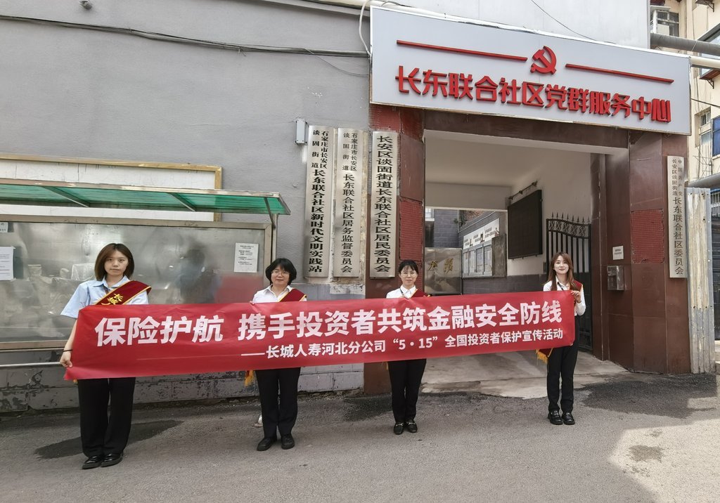 为切实保护投资者合法权益,长城人寿河北分公司工作人员于5月15日“全国投资者保护宣传日”走进石家庄市长安区长东联合居委会,开展以“保险护航,携手投资者共筑金融安全防线”为主题的宣传活动。