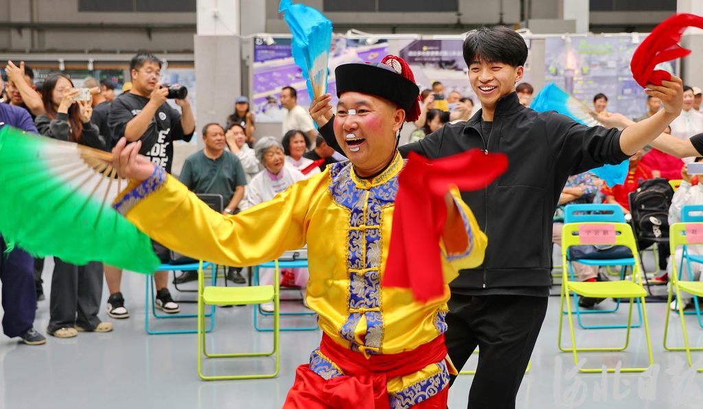 本次活动凸显科技与非遗的融合。燕山大学设计与艺术学院院长赵琳介绍,该校非遗研究基地正探索用3D建模复原根雕技艺、以数字动画呈现皮影故事,让老手艺穿上新“外衣”。现场,不少学生通过AR技术“穿越”到非遗制作场景,直观感受匠人精神。