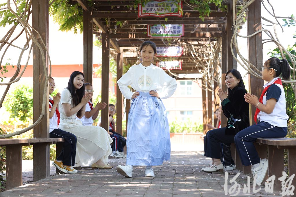 在老师的指导带动下,自小学部开始,学生们积极动手进行实践创作,将旧衣物经选材、裁剪、缝制、扎染四个环节,制作成一件件令人惊艳的传统服饰。