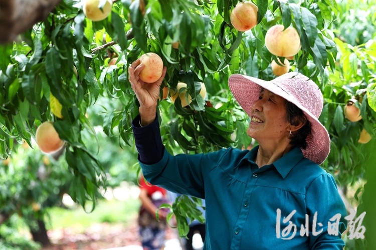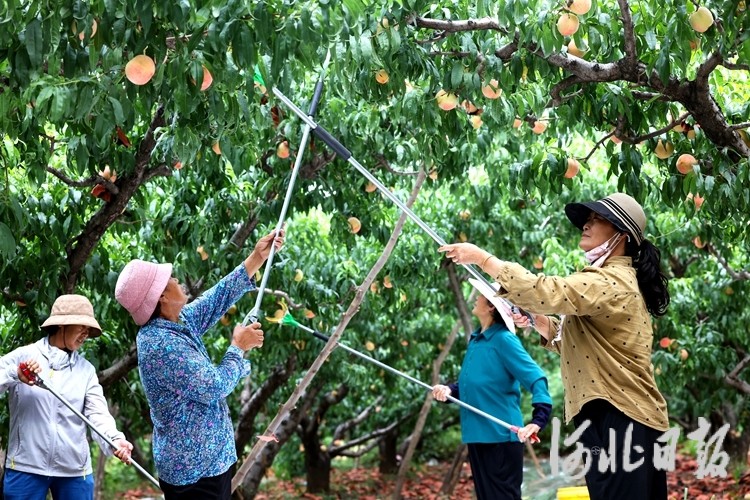 河北日报客户端讯(宋小青)日前,在邢台市信都区会宁镇的鲜桃种植基地,8000余亩桃园陆续迎来收获期,鲜桃挂满枝头,果农们正忙着采摘、分拣,一派丰收景象。