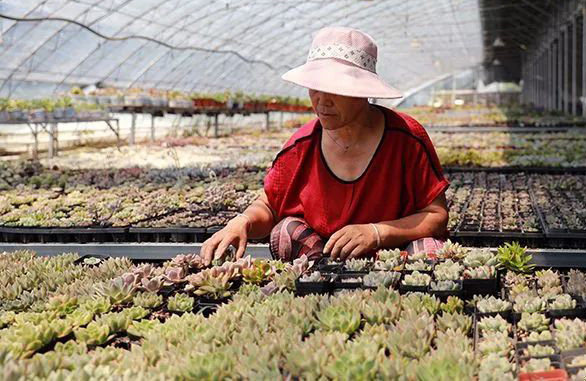 曲周县农业农村局副局长李富国介绍:“县里出台了不少优惠扶持政策,除了选地之外,还打造了直播基地,每年销售额在3亿元左右,带动就业3000余人,多肉已经成为我们曲周一张亮丽的名片。”