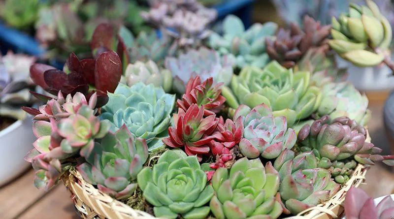 大棚内各色小巧玲珑、萌态十足的多肉。