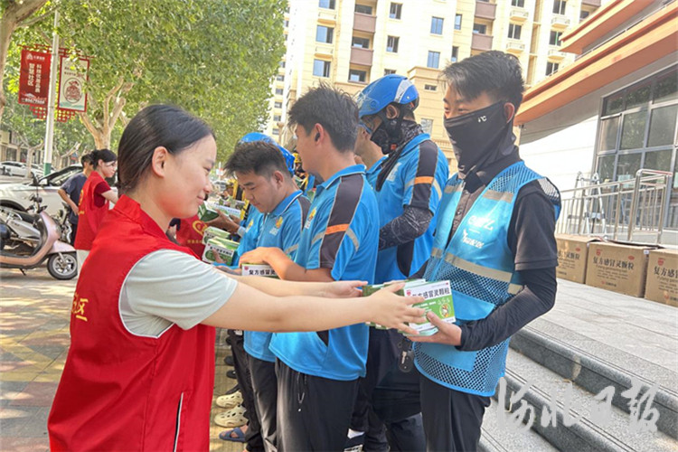 7月17日上午,赞皇县委社工部、赞皇镇治平寺街社区及城乡义工协会开展“炎炎夏日情,关爱‘骑行人’”关心关爱新就业群体活动。活动中,工作人员为外卖骑手发放防暑降温物品118份,并普及高温作业防护知识,提醒大家注意防暑降温。刘世伟摄影报道