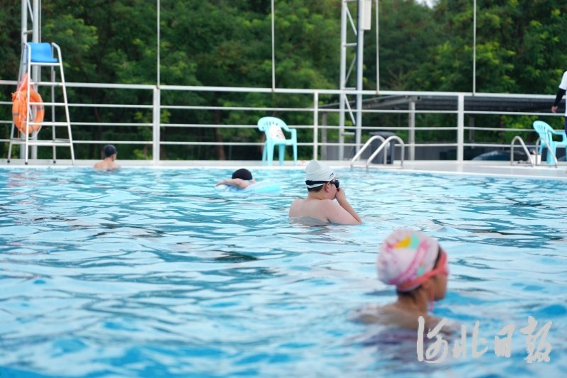 图为小朋友在唐山花海星球体育中心户外游泳馆游泳。