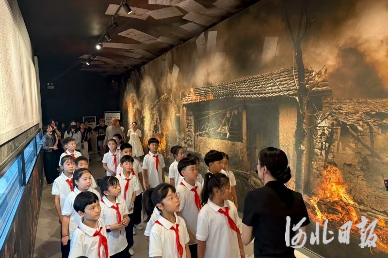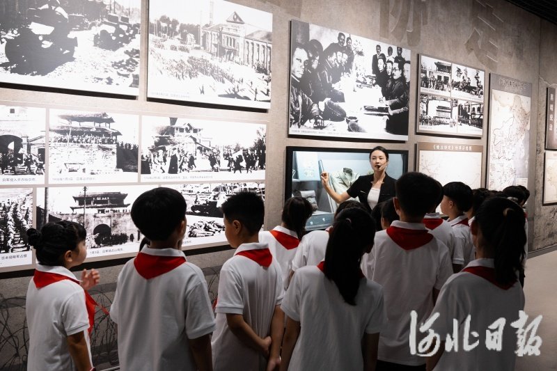 图为纪念馆讲解员带领学生参观展馆。李勃燃摄