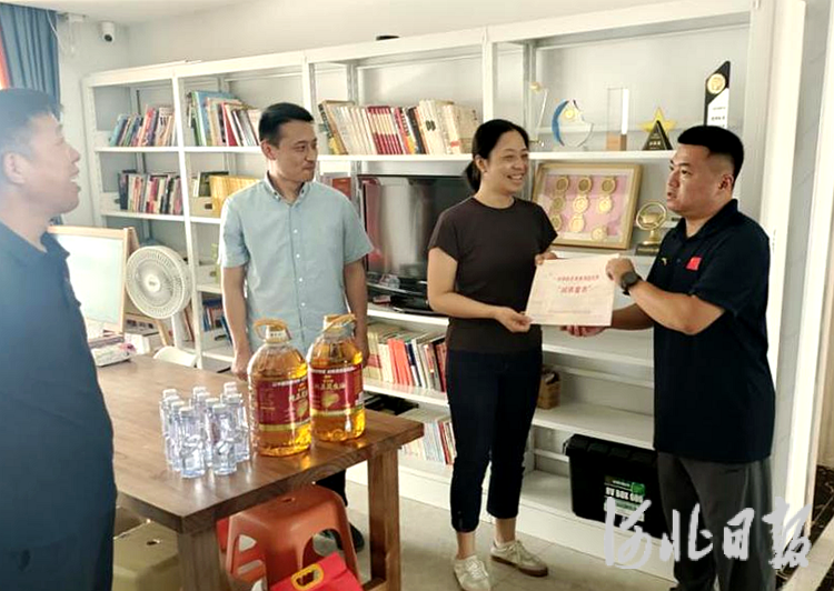 图为临西县委社会工作部工作人员为台希豪家人送来“城市家书”。