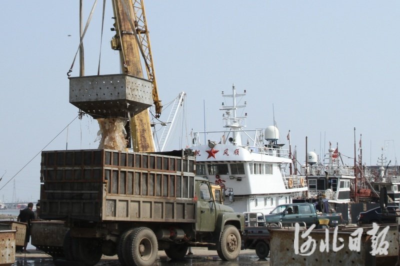 眼下正值海蜇集中捕捞期。连日来,河北省滦南县南堡镇嘴东码头人头攒动,一艘艘满载海蜇的渔船陆续靠岸,晶莹剔透的海蜇从船舱装进吊桶,再装进车厢被运往附近的加工厂,一派丰收的喜悦。