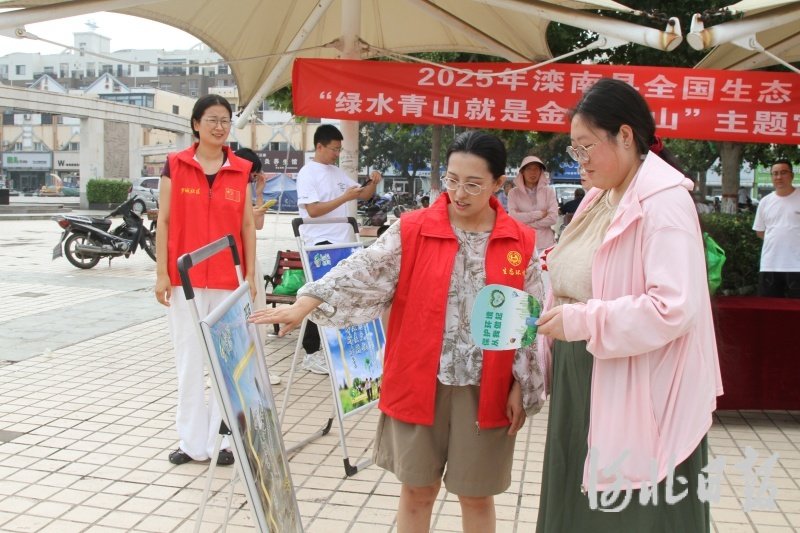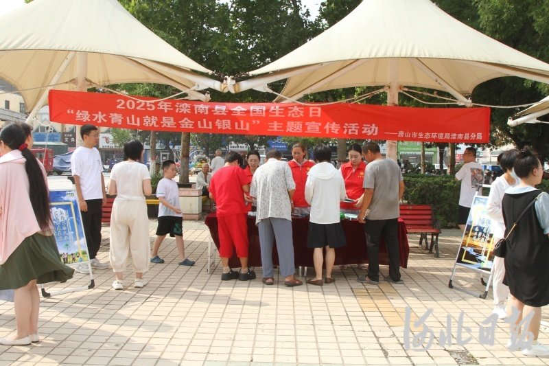 河北日报客户端8月15日讯(刘唯清)今天,唐山市生态环境局滦南县分局在金辉广场举办“绿水青山就是金山银山”主题宣传活动,向公众普及生态环保知识。