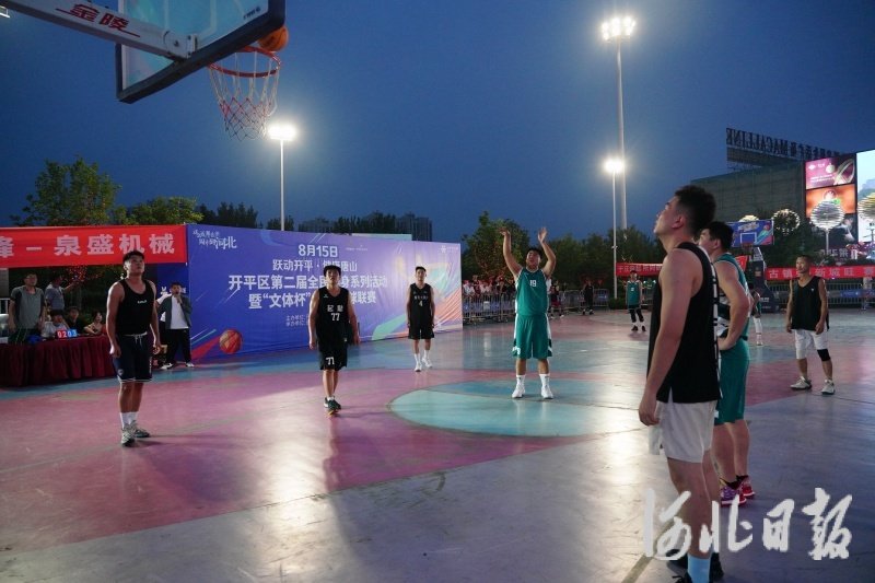 8月15日晚,唐山市开平区第二届全民健身系列活动暨“文体杯”村BA篮球联赛在中骏世界城广场精彩开赛,来自该区的8支篮球队开始为期20天的激烈角逐。