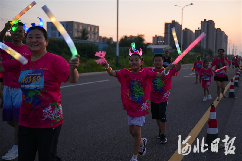此次荧光跑分为个人组与家庭组,全程4.5公里,以唐山高新区滑冰馆为起终点,途经学院北路、北安道等城市地标,沿途夜景与参赛者荧光配饰交相辉映。参赛者们一边奔跑,一边欣赏着灯光夜景,现场氛围热烈,加油声、欢笑声此起彼伏。
