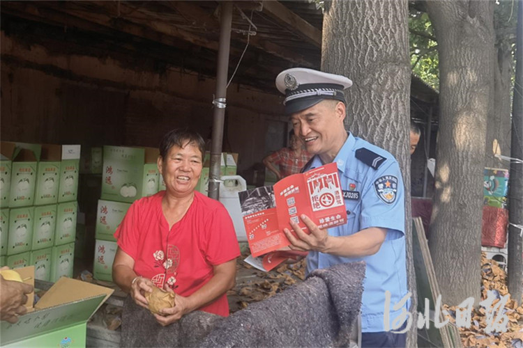 河北日报客户端讯(邢园园、袁仪珊)8月14日,晋州市公安局交通管理大队宣传民警走进辖区马于镇北冻光果品基地,开展交通安全宣传活动。