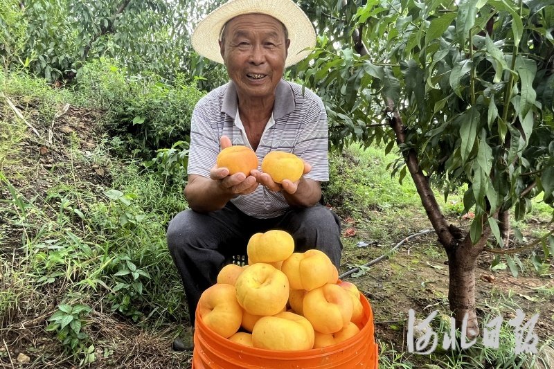 近日,河北省迁西县新庄子镇新庄子村的油蟠桃迎来了丰收季。漫山遍野的桃树上,金黄色的油蟠桃挂满枝头。果农们穿梭林间,忙着采摘、分拣、包装……脸上洋溢着丰收的喜悦。