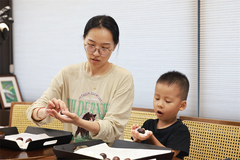 8月24日晚,在石家庄市长安区MM'S BAKER梅梅烘焙馆,青年夜校学员正在制作冰皮月饼。