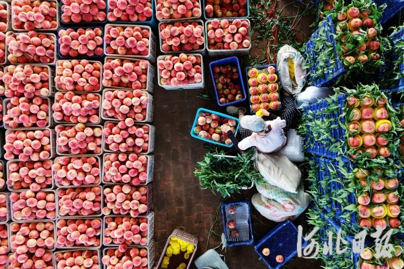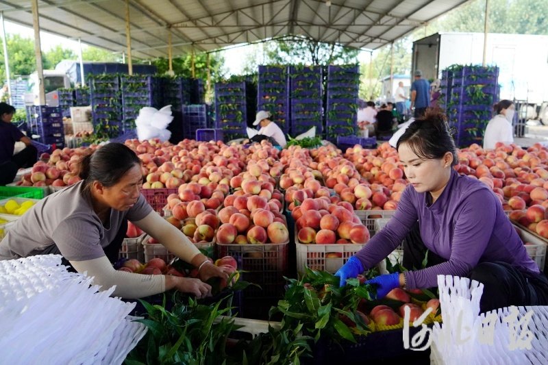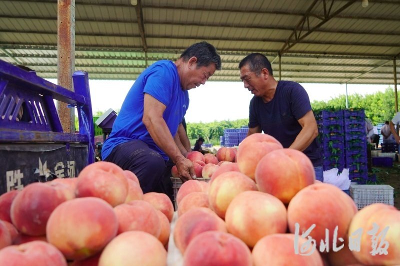 初秋时节,河北省乐亭县中堡镇连片的桃园里,露地栽植的鲜桃正值收获季,饱满的桃子压弯枝头,空气里都浸满了桃香。