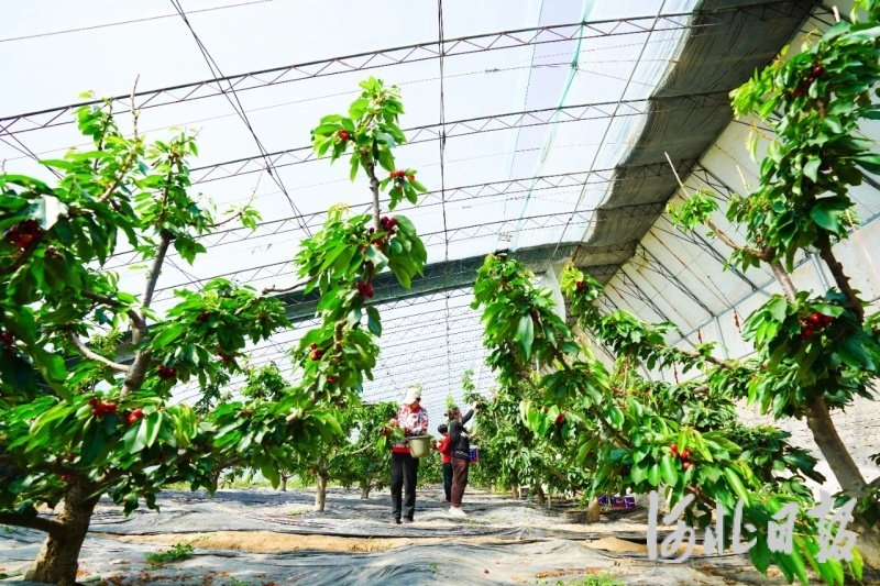 图为乐亭县毛庄镇樱桃小镇,村民采摘樱桃。(资料图)