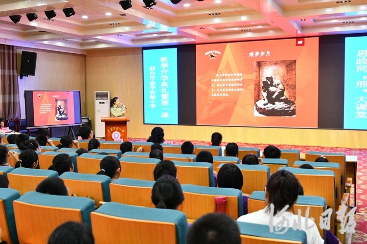 9月1日,中国人民抗日军政大学陈列馆组织讲解员分别走进邢台市金华实验小学、郭守敬小学、第一实验小学、浆水完全小学等多所抗大联盟学校,以“线上+线下”联动的方式开展思政同“邢”——“开学第一课”教育活动。辛星、李彤彤摄影报道