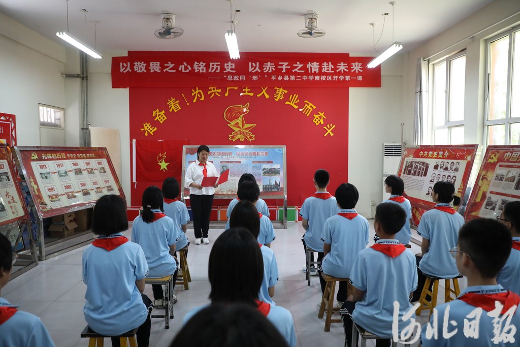 据悉,平乡县以“开学第一课”为契机,持续推进“大思政课”建设,60余场思政同“邢”主题思政课全面铺开,以“课堂上的思政课”“行走的思政课”等多种形式讲好党史、讲好红色故事、弘扬科学精神、厚植“三农”情怀,全方位发挥思政课立德育人的作用,帮助学生扣好人生的“第一粒扣子”。