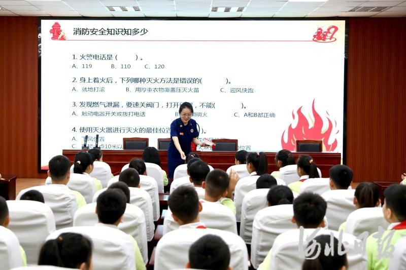 “发生火灾应该怎么办?”“火警电话是什么?”……大队宣传员结合孩子们的年龄,用浅显易懂的语言讲述消防安全常识,教会孩子们如何正确报火警、如何逃生以及日常生活中如何预防火灾等。