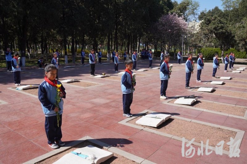 图为清明时节少先队员为烈士墓献上鲜花。(资料图。王昊摄)