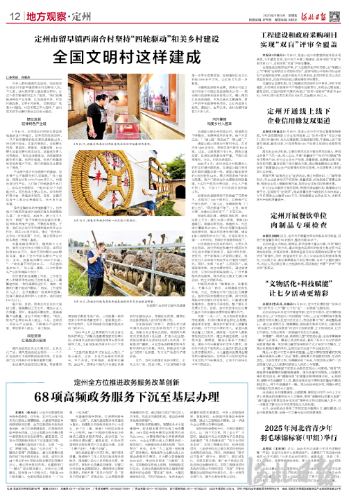 许多人都知道清风店战役,但战役发生地定州市留早镇西南合村却鲜有人知。不久前,该村获评第七届全国文明村,让这个原本普通的村庄火了起来。“我们统筹推进特色产业发展、红色旅游开发、村容村貌改善、文明乡风培育,‘四轮驱动’和美乡村建设,村庄实现三年大变样。”该村党支部书记兼村委会主任张士超说。