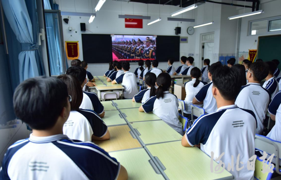 在北戴河新区第一中学教室内,师生们齐聚一堂,全神贯注地观看阅兵直播。这次阅兵不仅是一场视觉盛宴,更是一堂生动的爱国主义教育课。学校领导、老师、学生纷纷表示,内心充满了震撼与感动,深刻地体会到历史的厚重与今天和平生活的来之不易。