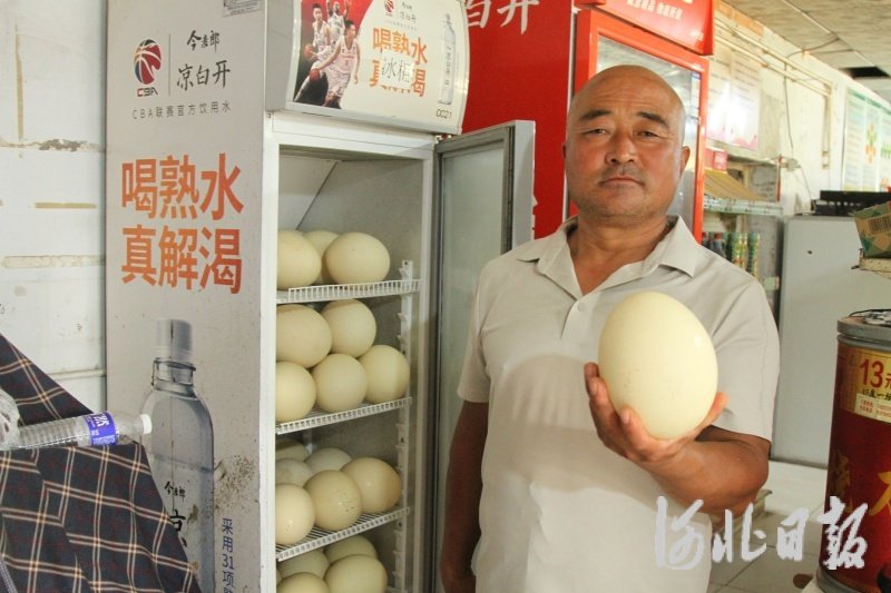 图为养殖户王秀瑞展示鸵鸟蛋。刘唯清摄