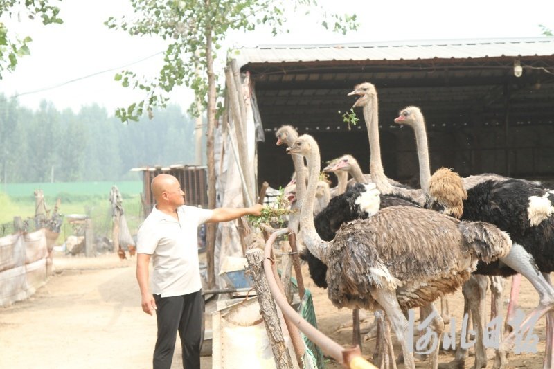 河北日报客户端讯(刘唯清)近日,在河北省滦南县扒齿港镇后营村的一处鸵鸟养殖场内,30多只体高近两米、平均体重超过100公斤的鸵鸟正悠闲踱步。养殖户王秀瑞手持青菜走进场地,这群“大块头”立刻靠近围栏,伸长脖颈等待投喂。