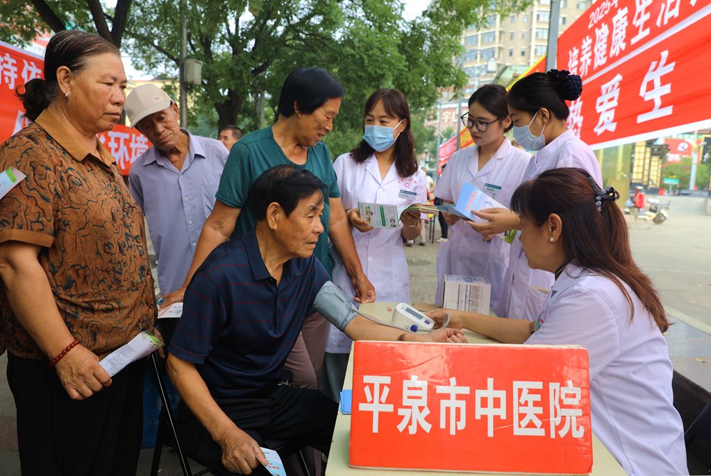 平泉市中医院的医护人员还现场为群众免费测量血压等义诊服务,并围绕慢性病防治等知识进行科普宣传,引导群众养成文明健康绿色环保的生活方式。