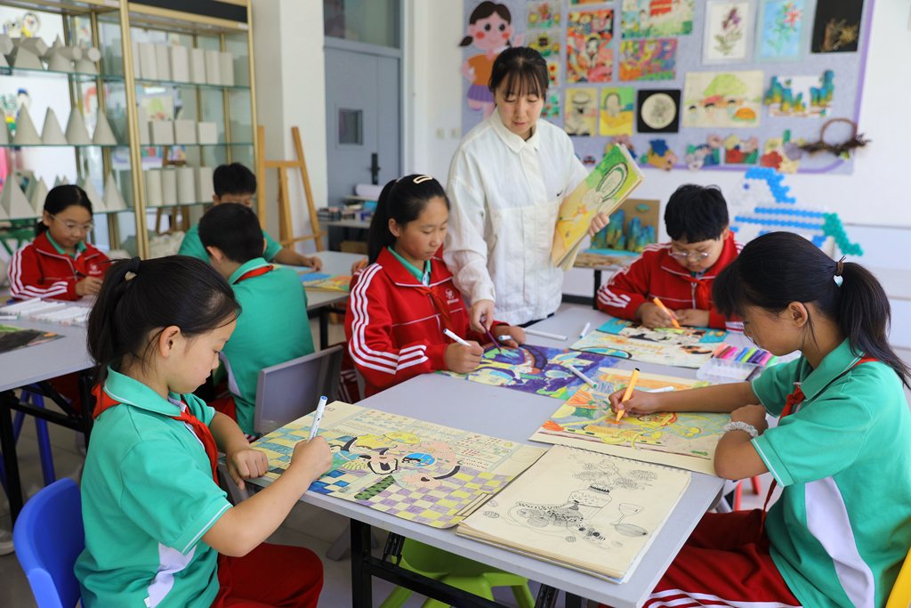 该校建有音乐室、舞蹈室、图书阅览室、少先队活动室等教学活动场所,开设了舞蹈、绘画、国学、书法、社会实践课等素质教育课程。通过组织开展“经典诵读比赛”“演讲比赛”等系列活动,让乡村孩子开阔视野、丰富校园文化生活。为增强学生体质,传承传统文化,该校将非物质文化遗产名录项目“霸王鞭”融入大课间素质教育实践中,并自主创编了一套民族韵律操——“霸王鞭”,引导学生在大课间上练习,为乡村孩子搭建展示才艺的“舞台”。
