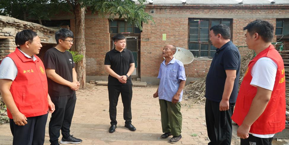 八一建军节,贾城威(左三)与县退役军人事务局共同慰问退伍老兵。