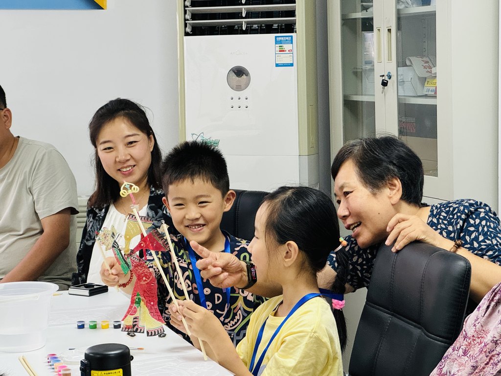 2024年7月,在石家庄市桥西区南长街道保晋南街新时代文明实践站,桥西区“帮小西”公益课堂“非遗手工皮影”开课。图为两位小朋友正在尝试皮影操作。石家庄市桥西区委宣传部供图
