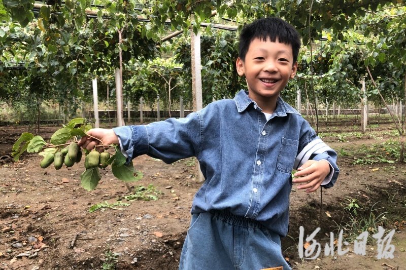 图为小游客展示自己采摘的软枣猕猴桃。王连营摄