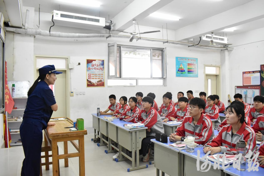 9月12日,威县消防救援大队消防宣传员为该县第二中学学生讲授消防知识。