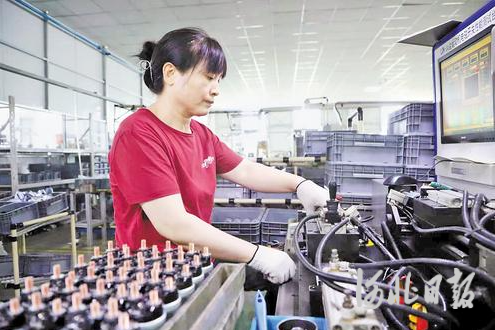 7月30日,在河北长立汽车配件有限公司,工人在生产线上进行操作。魏志广摄
