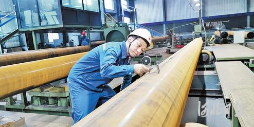“这是一批为吉林油田赶制的新能源专用小口径直缝埋弧焊接钢管。”该公司技术主管刘东说,目前,公司正开足马力,全力保障生产。