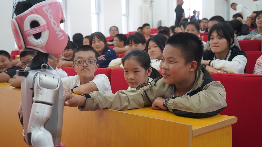 活动尾声的机器人互动体验环节,多名学生上台参与互动,进一步拉近了学生与科技的距离。