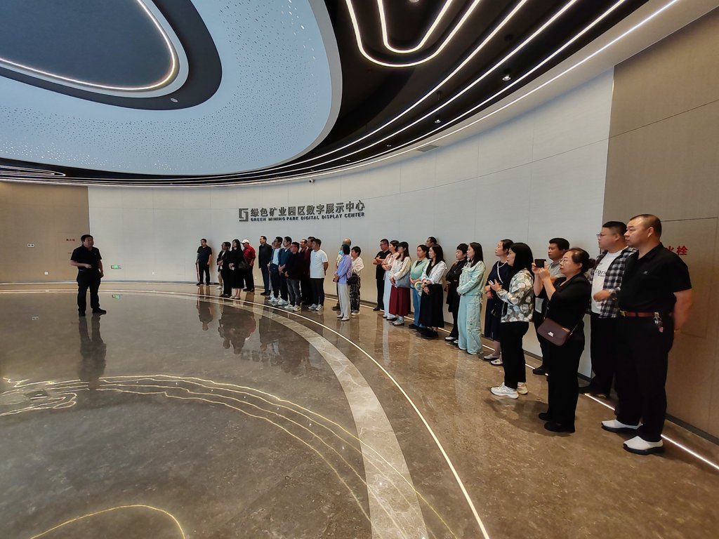 图为采风创作团队在绿色矿业园区数字展示中心参观。
