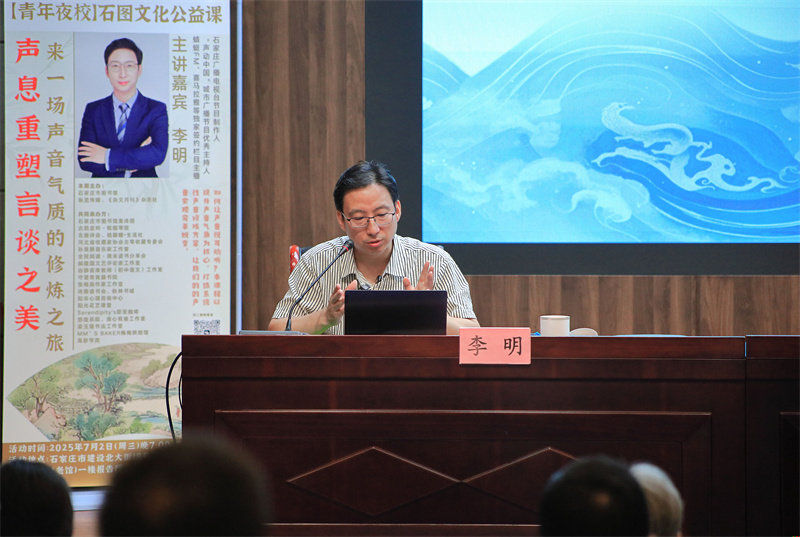 9月10日晚,由石家庄市图书馆、纵览传媒和《杂文月刊》杂志社共同主办的大思政·青年夜校播音公益课程再度开讲。石家庄市广播电视台节目制作人李明现场讲解声画交融技巧。