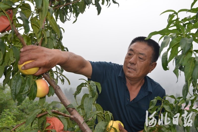 河北日报客户端讯(孟依然)近日,河北省迁西县兴城镇王庄村,桃农张秀满正忙着在桃园里采摘黄油桃。