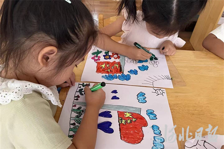 近日,石家庄市藁城区工业路幼儿园以“国防润童心 浓浓爱国情”为主题,组织开展了升国旗、学习手指谣、手绘主题画作等一系列贴合幼儿年龄特点的国防教育活动,让爱国情怀在孩子们心中生根发芽。苏秋菊、韩敏娟摄影报道