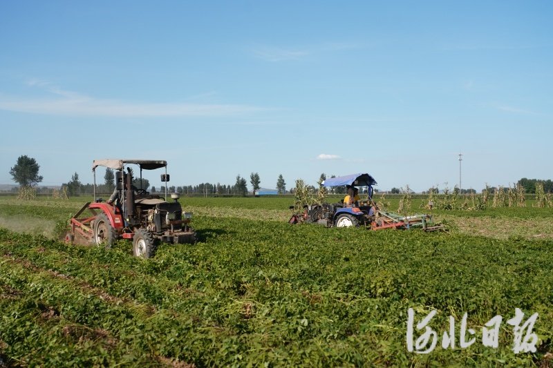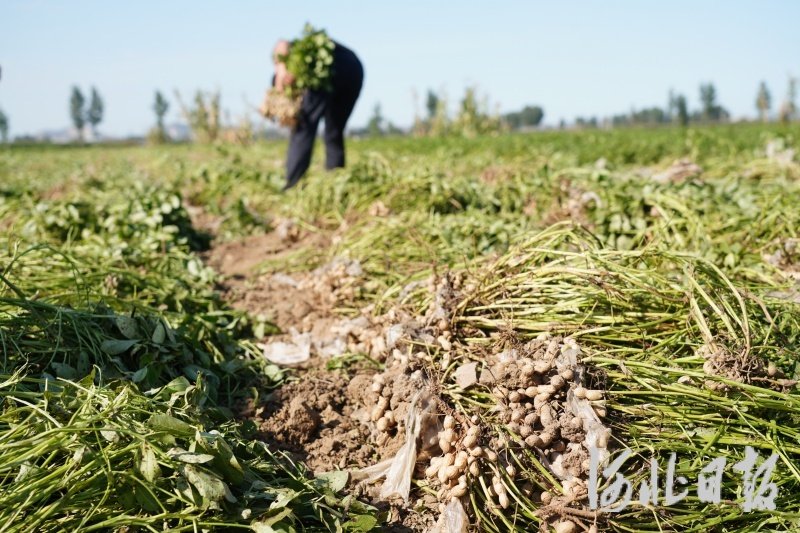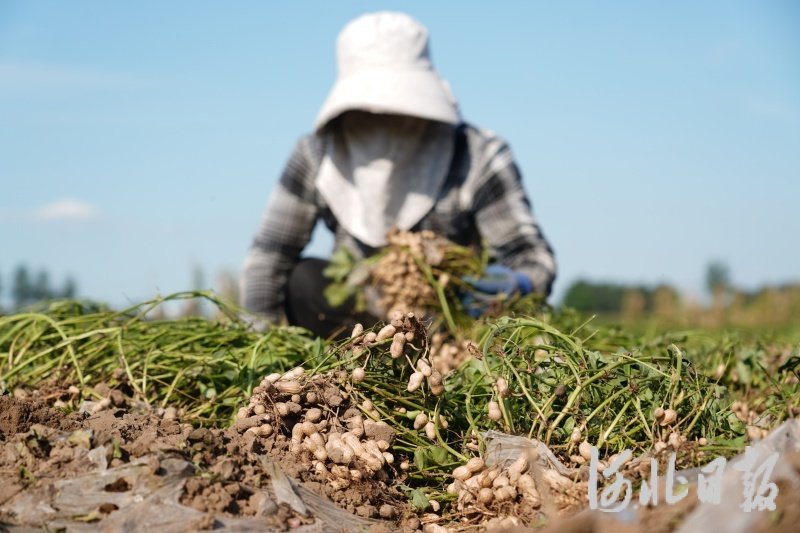 图为唐山市开平区洼里镇花生采收现场。