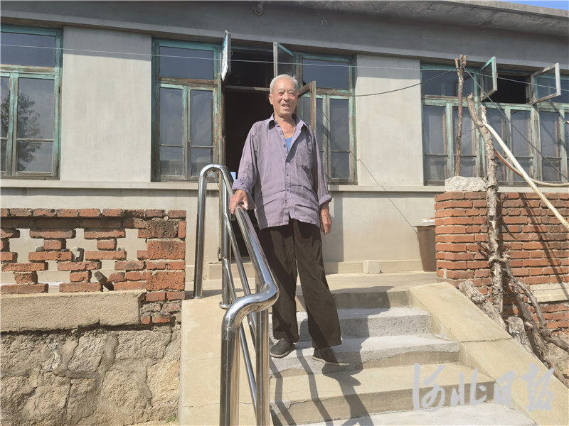 今年6月底,山海关区孟姜镇北窑河村阎林唐家进行了适老化改造。9月15日,88岁的阎林唐扶着新安装的扶手下台阶,准备去散步。河北日报、河北日报客户端记者孙也达摄