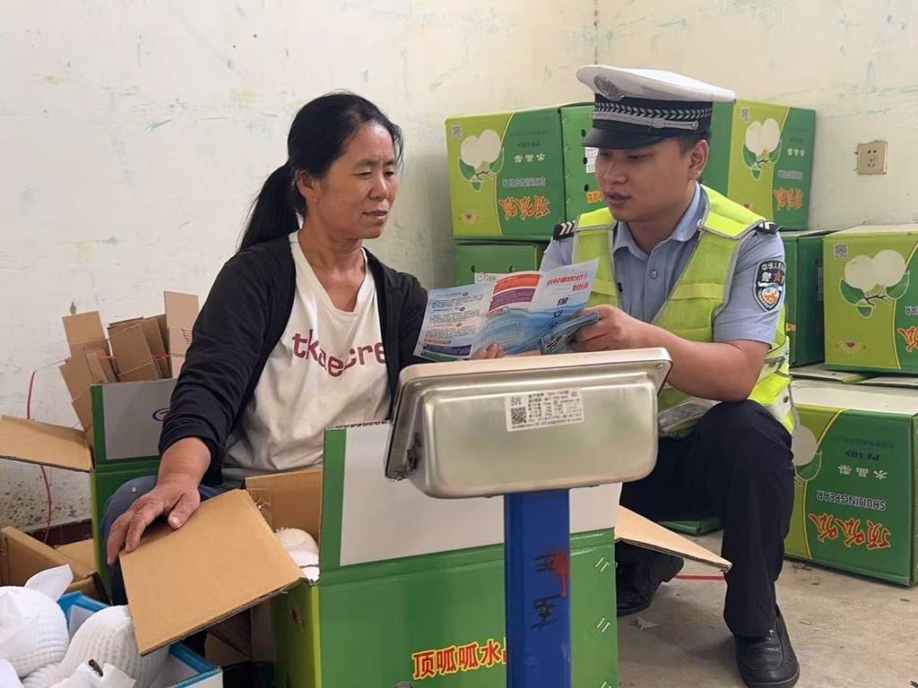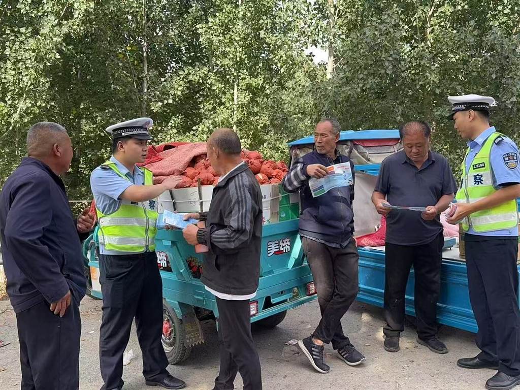 又到魏县鸭梨上市季节,9月18日,邯郸交巡警魏县大队宣传民警走进东代固镇水果交易市场,发放500余份宣传资料,给卖梨的老乡和外地收购商送“安全”。