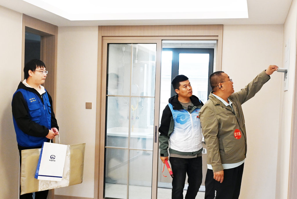 在回迁服务保障上,组织方做了充分准备。回迁现场配备159名物业人员,为业主办理入户手续,提供安全、专业的物业服务;120名志愿者组成6个服务小组派驻各交付点,协助开展验房、维修对接、物业服务及秩序维护等工作。此外,现场还准备了《业主手册》《住宅质量保证书》《临时管理规约》等各类入住资料,500名专业验房师团队协助业主开展验房工作,方便业主入住。