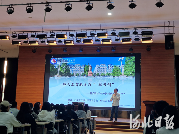 河北日报客户端讯(张媛)9月19日下午3时,河北经贸大学学术报告厅座无虚席,一场以“当人工智能成为‘双刃剑’——守护数字时代的国家安全”为主题的网络安全宣讲活动在这里精彩上演。当日,共青团石家庄市新华区委、河北经贸大学团委,特邀石家庄铁道大学冯鑫教授,为200余名青年学生送上了一堂网络安全科普课程。