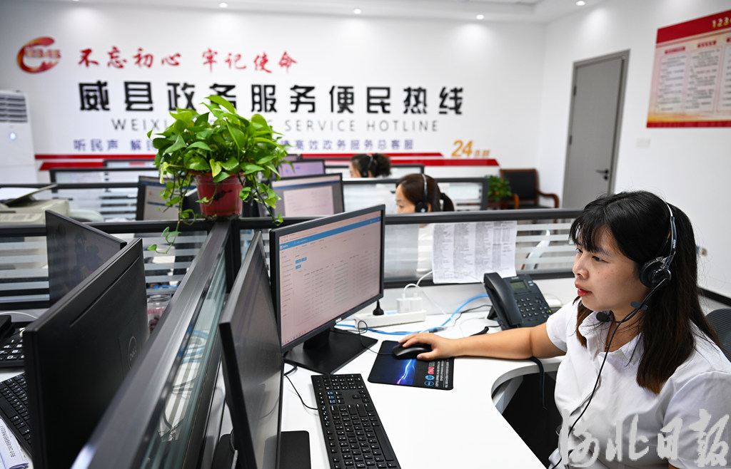 近日,在威县综合治理中心,“民情通办”平台工作人员在接听热线电话。 河北日报记者 赵永辉摄