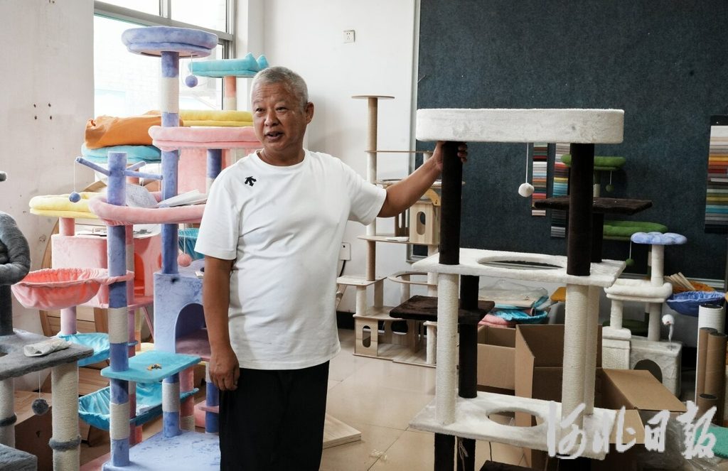 正说着,70岁的村民吴兰香来交活儿。她组装的猫爬架通过质检,现场便领到了80元加工费。“在家就把钱挣了。”徐亚飞给记者算了笔账,“像这样的代加工,全村有40多户,一年能干260天,日收入七八十元。自己做的产品能卖到世界各地,大家可骄傲啦!”据了解,北白佛村距正定县城5公里,共304户、1286人。自2005年起步发展宠物用品产业以来,该村辐射带动周边村镇同步发展,现有相关企业15家,其中贝佳、毛茸茸、乐宠规模居前三。