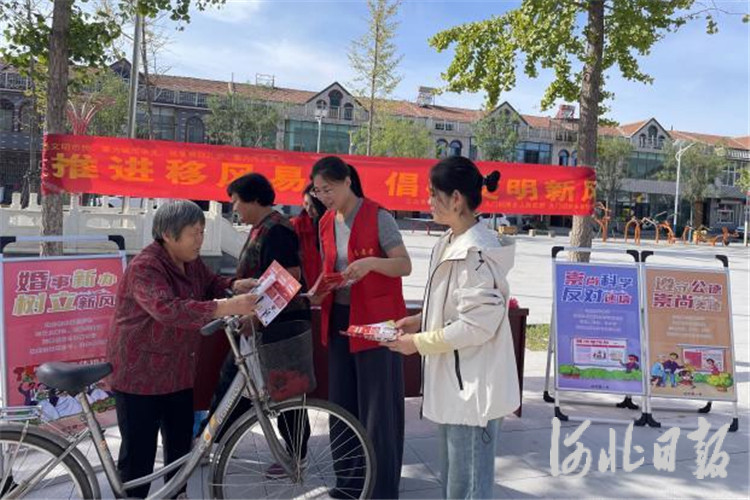 河北日报客户端讯(苏秋菊)近日,石家庄市藁城区文明办联合九门回族乡新时代文明实践所组织开展“推进移风易俗 倡导文明新风”宣传活动,通过互动宣传、政策讲解、专栏展示等多种形式,引导群众自觉摒弃陈规陋习,共同践行文明新风尚。